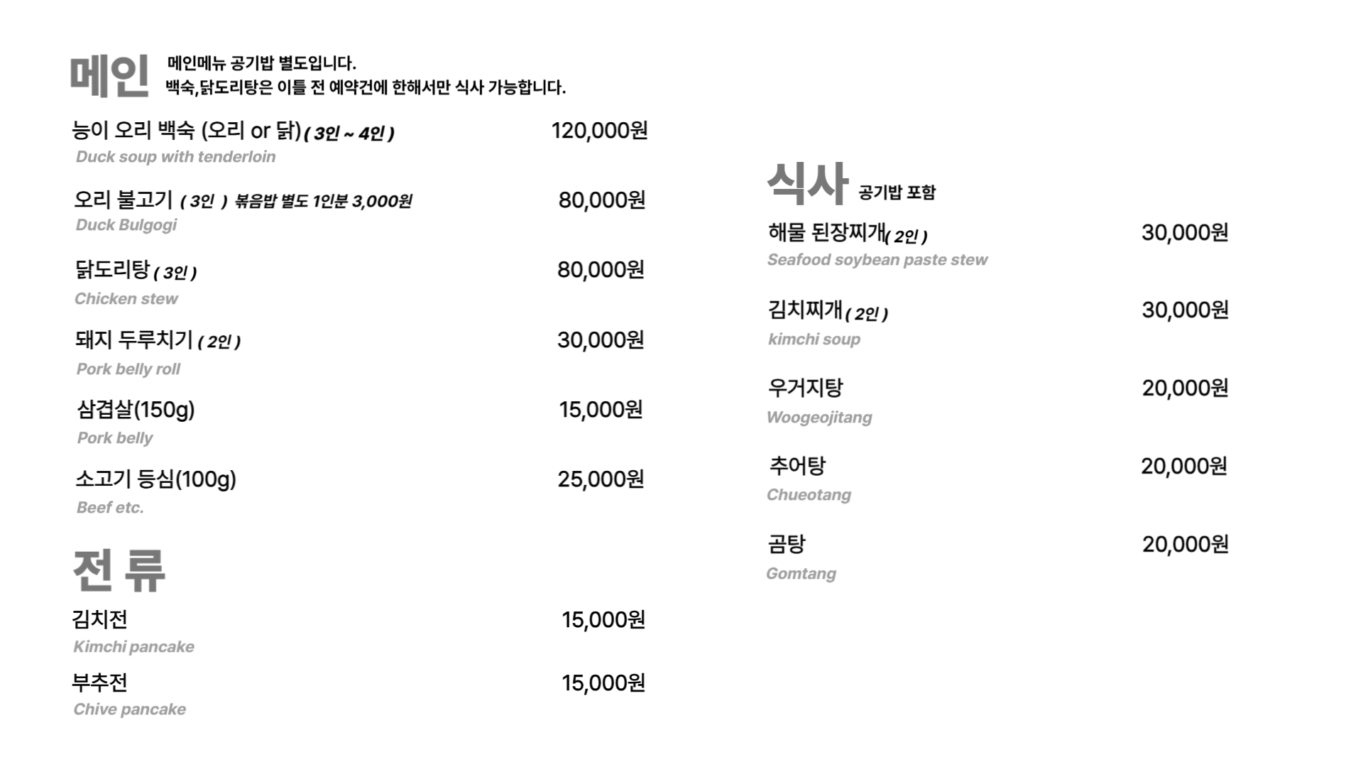 미리 예약을 해주셔야합니다.프론트로 문의해주세요.식사는 계절별로 변동됩니다.