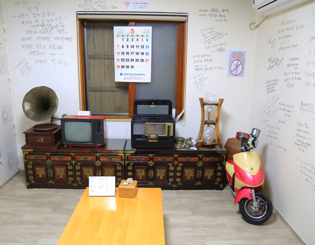 영화 세트장이였던 '카페 밀양' 내부에는 촬영 사진과 흔적이 남아있습니다.