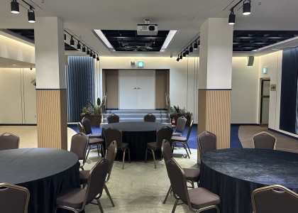 최대 70명까지 수용되는 빔프로젝트 와 마이크 등 세미나와 미니 행사를 즐기는데 안성맞춤!