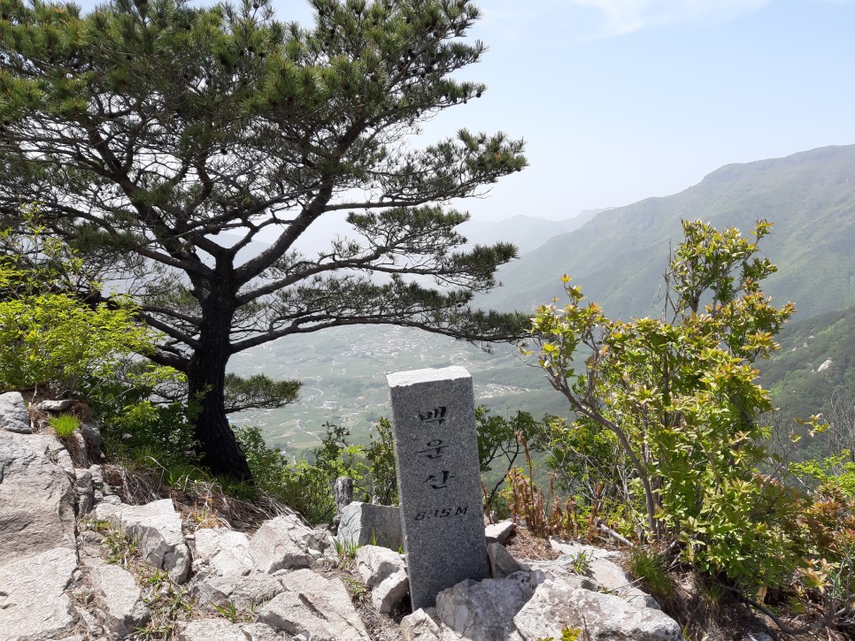 백운산은 가지산(실혜산)의 앞가슴에 해당되는 산으로 산 전채가 한 조각의 흰구름처럼 보이는 화강암으로 이루어져 있어 얻어진 이름이다. 주위의 큰 산에 가려져 이름이 나지 못했으나 정상 부근에는 온통 기암괴석으로 이루어져 경관이 빼어나며, 등산로는 아주 호젓하다. 바위봉으로 우뚝 솟은 정상을 보면 마치 중국에 있는 황산을 보는 듯한 느낌이 든다.